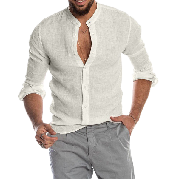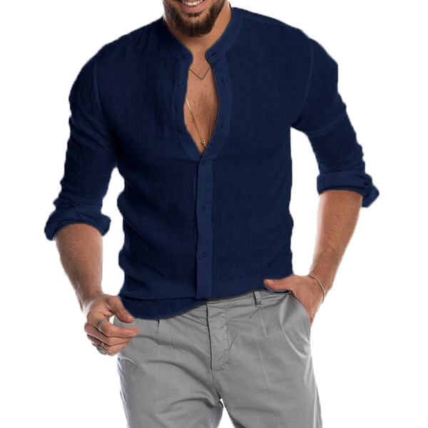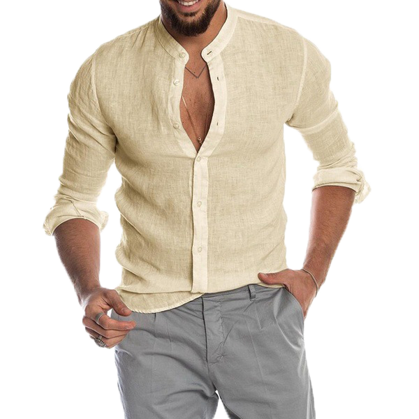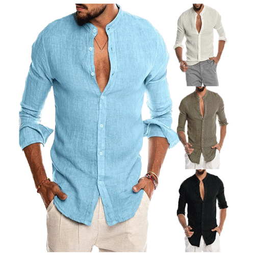 V-neck linen cardigan shirt-D191 | Inspanda