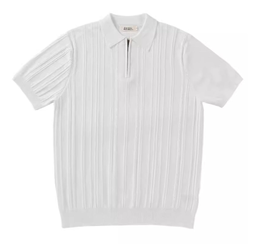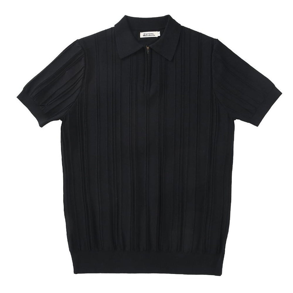 Striped zip-up polo shirt-D180