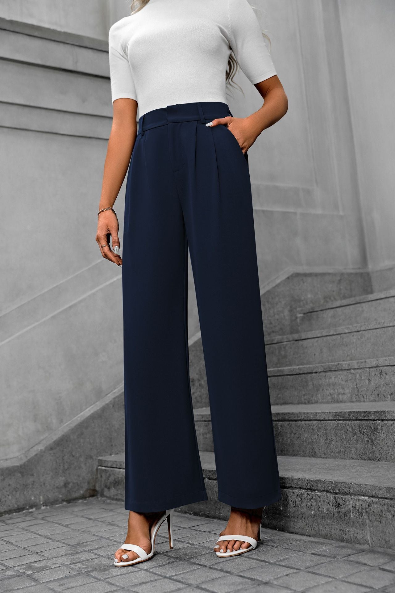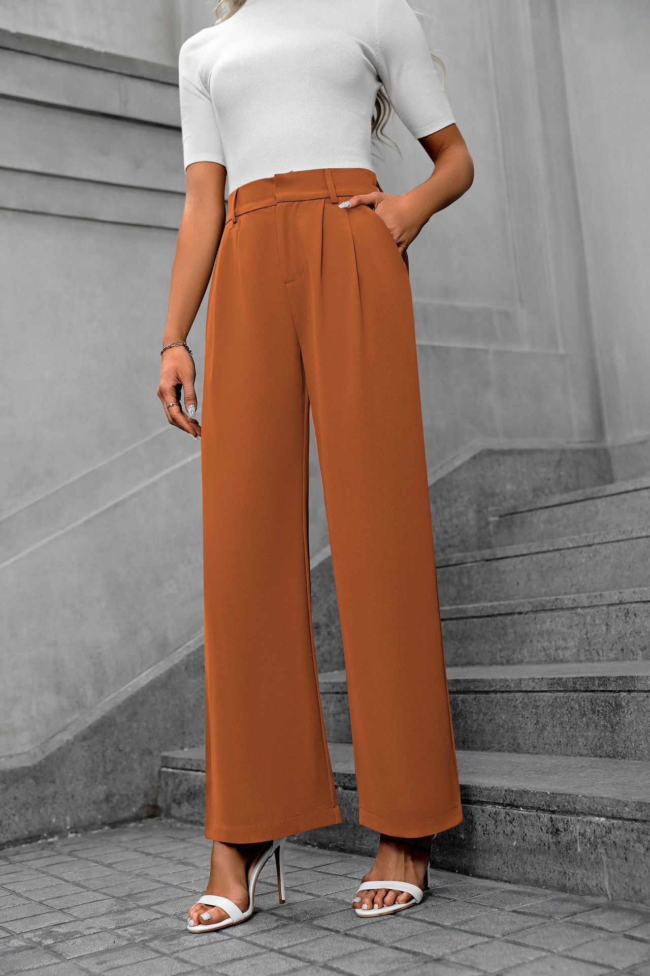 Solid color straight leg pants-D117 | Inspanda