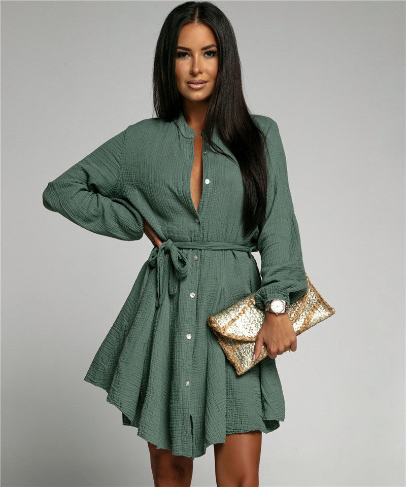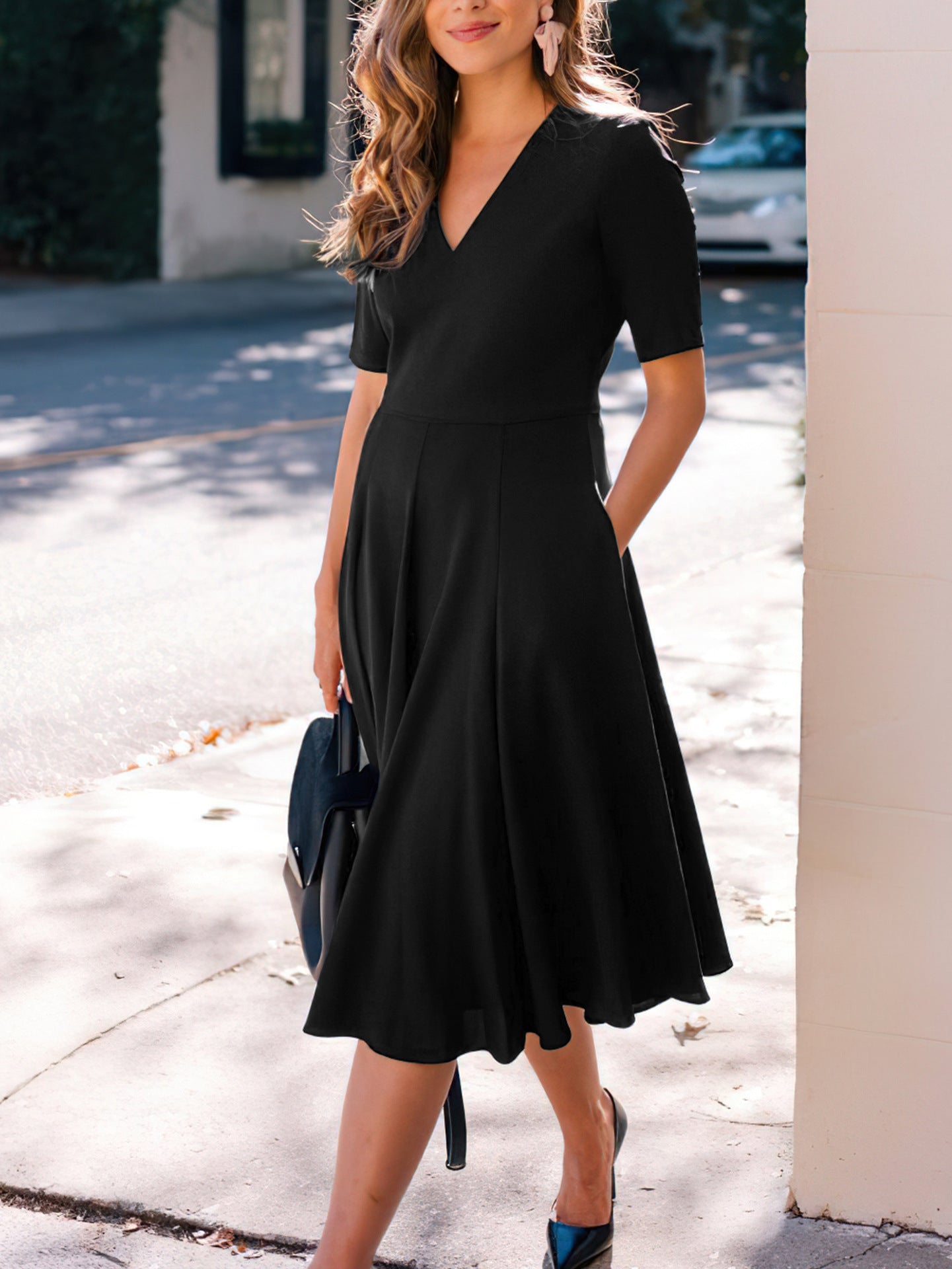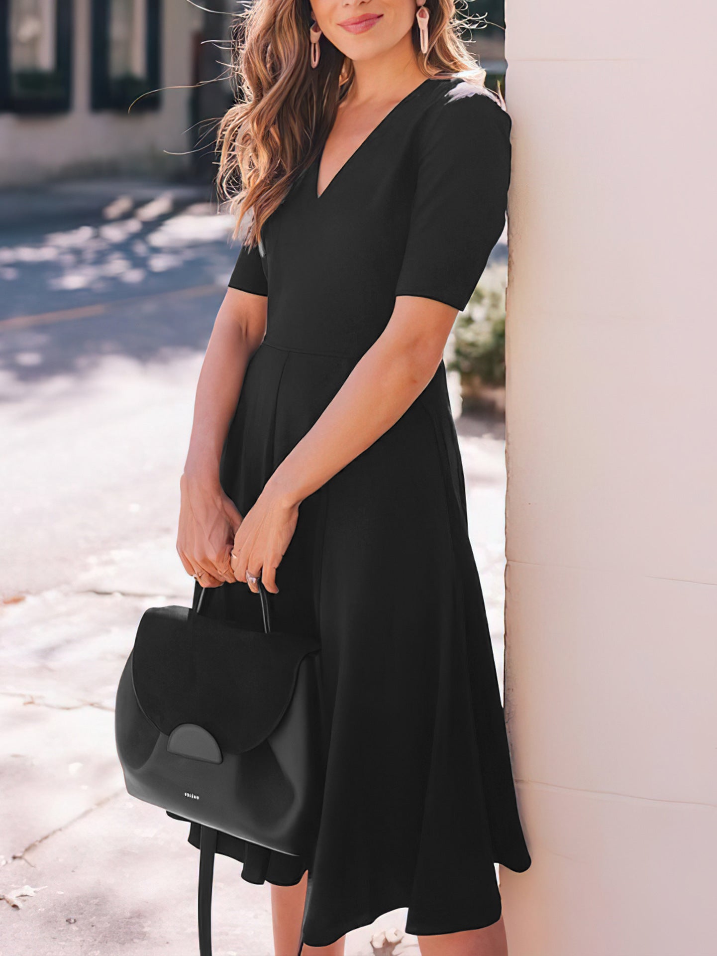 Solid color V-neck dress-D147 | Inspanda